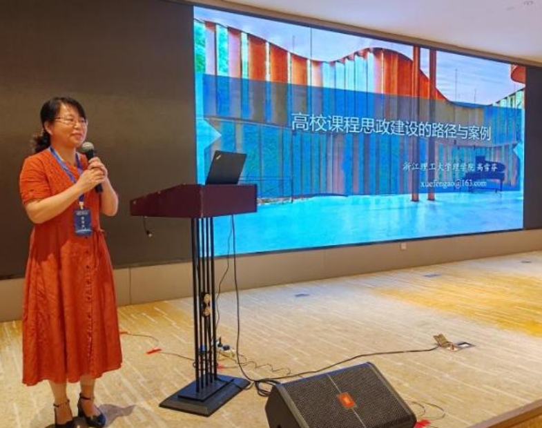 浙江理工大学理学院高雪芬教授报告了《高校数学课程思政建设的路径与案例》,介绍了数学课程政设计的实施路径等,并展示了典型的实施案例。