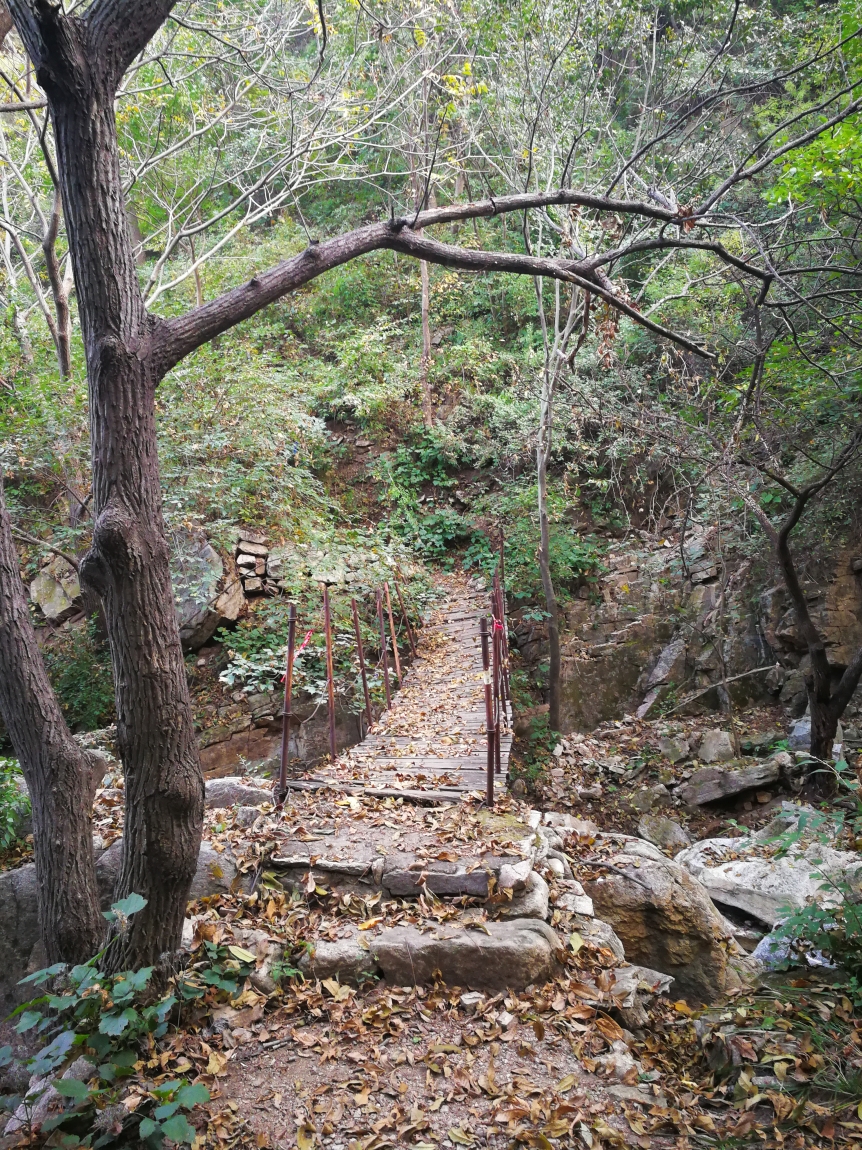 数学学院党委委员马尽文老师知道此事后,积极响应院党委“为群众做一件好事"的号召,2019年9月29日亲自开着私家车,自付油费和高速费,带领本院老师杨建生,丁帆和周蜀林对学院工会秋游的候选地点——密云五座楼森林公园进行了实地考察和路线测试。出于安全考虑,马尽文老师带上了4根登山杖供大家使用。由于丁帆老师是第一次爬这样的山,马尽文老师一直走在队伍的后面,重点照顾丁帆老师。小分队上午十一点上山,十二点到达第一座楼。