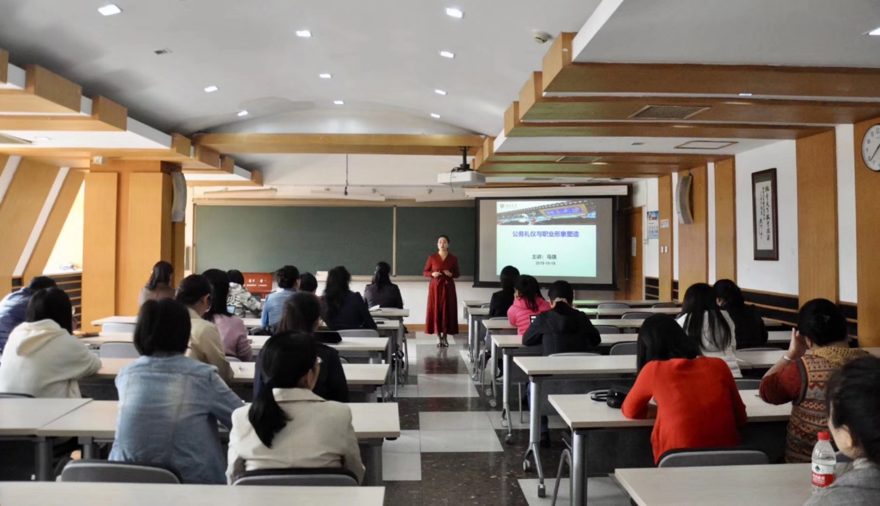 2019年10月18日下午,由行政实验党支部和行政工会小组一起举办的行政系列培训讲座之“公务礼仪与职业形象塑造”在理科一号楼1560教室顺利举办。本次讲座由马瑛老师作为主讲嘉宾,为学院的行政人员传授公务礼仪与职业形象塑造的内涵和技巧。学院的40多名行政人员积极到场,专心致志地学习了该课程。马瑛老师是中国国家培训网礼仪培训师项目专家组成员、国际注册高级礼仪培训师、美国ACI认证高级形象管理师,从事礼仪培训行业10多年,在公务礼仪与职业形象塑造方面有着丰富的经验和独到的见解。