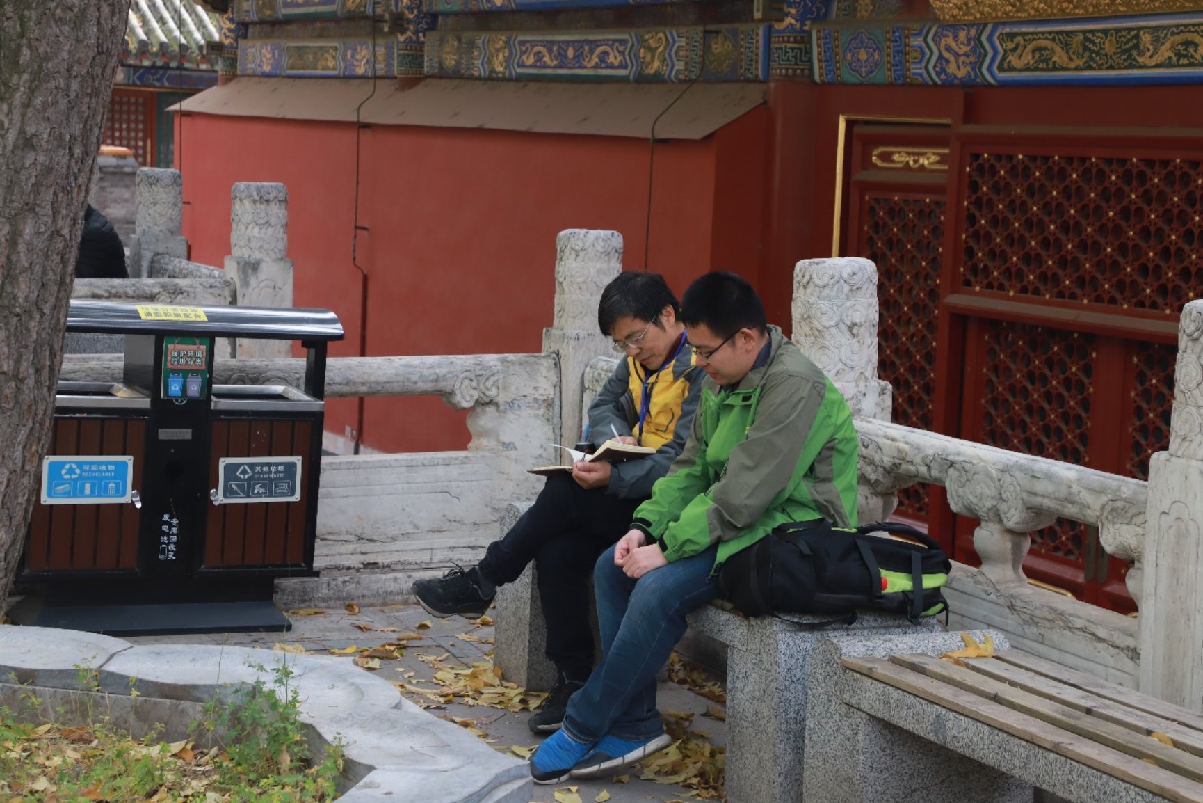 潭柘寺因古老而有许许多多的传说,因传说而神秘。在潭柘寺里面有一棵被称为“帝王树”的千年银杏树。这棵银杏有40多米高,树干周长9米,得好几个人手拉手才能环抱,遮荫面积达到600平方米,真正的参天大树,相传这棵树种于唐朝贞观年间,距今大约有一千四百多年的历史。清代的乾隆皇帝曾经封这棵树为“帝王树”。 老师们通过打卡分享自己所了解到的各种传说,让参加秋游的成员们对潭柘寺的了解进一步加深。在这个深秋,古乐悠扬,茗茶飘香,金色银杏叶纷纷飘落的时刻,参加秋游的成员们在其中可以感受到大自然震撼的美景交织悠久寺院历史文化所产生的动人画面。