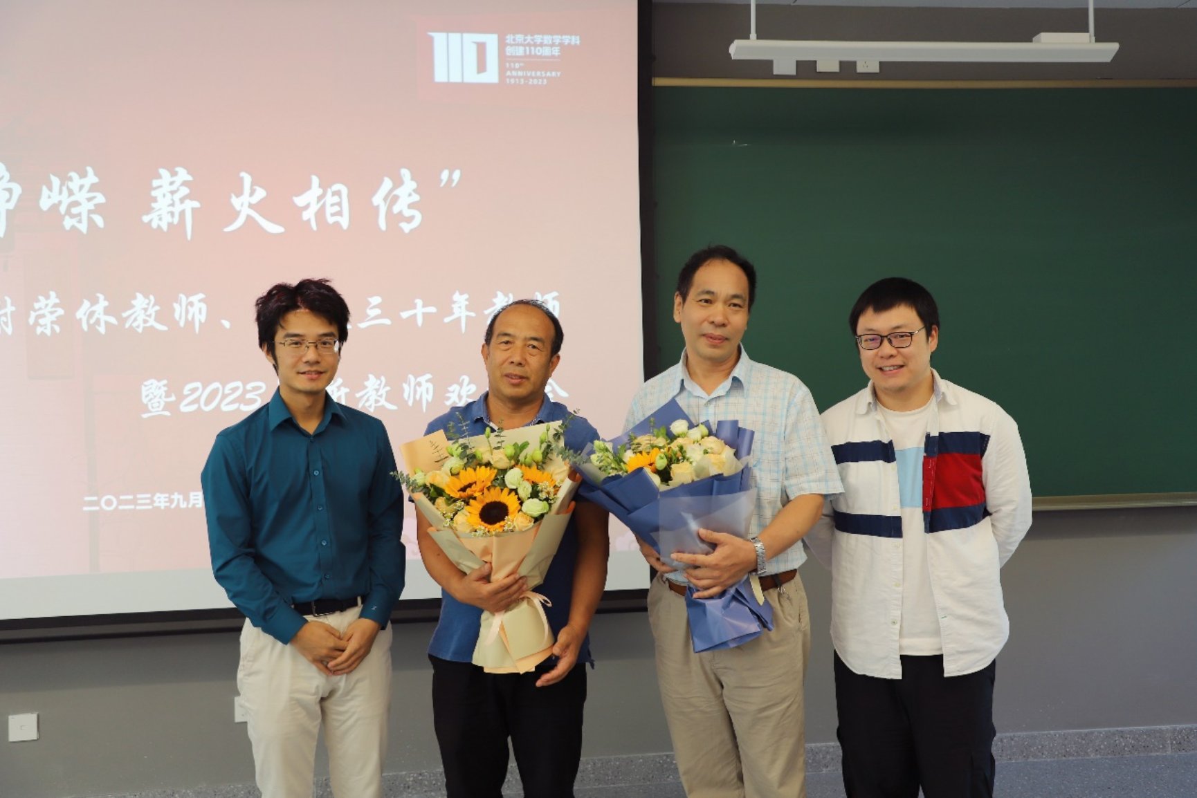 2023年9月22日上午,在北京大学智华楼四元厅举办“百十峥嵘 薪火相传”欢迎会,旨在感谢荣休教师、从教三十年教师,并欢迎2022年10月至今新入职的教师。活动的重要参与者包括数学科学学院院长陈大岳、党委副书记兼副院长孙赵君、党委副书记董子静、工会主席周铁、工会副主席郑春鹏和学院的部分教职工参加了活动。活动由工会副主席周蜀林主持。