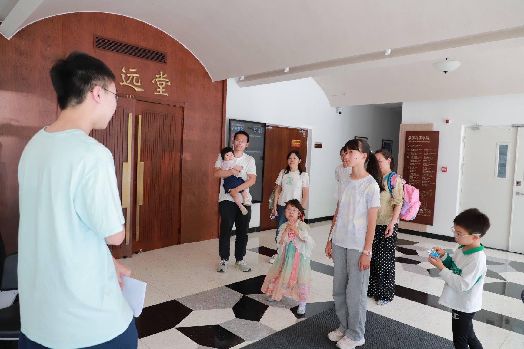 活动的第一部分在智华楼内展开,孩子们将在工作人员的带领下探索智华楼的奥秘。通过数学科普导览,他们将了解数学在现实生活中的广泛应用,如何运用数学解决生活中的问题,并深入了解数学知识的魅力。工作人员将通过生动有趣的讲解,让孩子们在探索中感受到数学的无穷魅力,激发他们对数学学科的好奇心和兴趣。