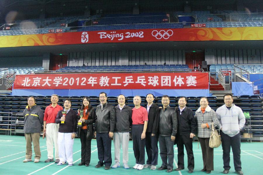 北京大学2012年教工乒乓球团体决赛在2012年11月8日下午正式拉开帷幕。北京大学数学科学学院男子乒乓球一队和二队不负众望,经过了3轮紧张刺激的比赛,全部进入4强,分别取得了第一和第四的好成绩。