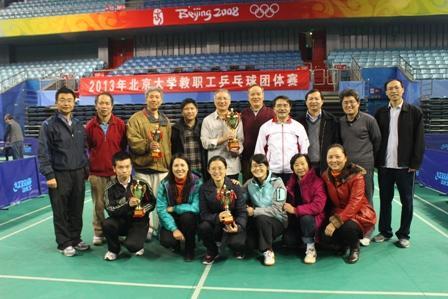 2013年11月1日晚,北京大学教职工乒乓球团体赛八强决战在邱德拔体育馆举行。数学科学学院选送的男子一队、二队、三队以及女队四支精锐携手杀入最终的战场。最终,凭借强大的集团优势和高人一筹的整体实力,由刘张炬、戴波、蒋美跃、甘少波和徐茂智组成的数学科学学院男子一队继在半决赛中以3:2险胜北大附中队后,又在决赛中以3:1力克校机关队,勇夺男团冠军,达成了数学学院男队在此项赛事中的四连冠。