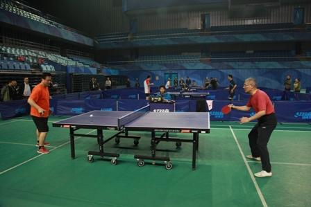 男团八强战中,数院一队战胜三队的比赛还算比较轻松,但四强战中,数院一队却碰上了劲敌――北大附中队。去年团体赛,两队在决赛中杀得难解难分,最终依靠数院头号男单、“大款”刘张炬老师取得关键两分,数院一队才以3:2险胜附中夺冠。今年这场“提前到来的决战”中,又谱写了过程不尽相同,但同样精彩的剧本。前三盘比赛,数院一队凭借刘张炬老师和蒋美跃老师的两分取得场点。第四盘比赛刘张炬老师与阳华老师的巅峰对决,正是去年决赛的翻版,但这次刘老师却不敌阳老师,使两队回到同一起跑线上。“大款”的初次失利,让场边助威的数院人心中一沉。关键的第五盘较量中,戴波老师临危受命,在第一局失利、命悬一线的危机之下,凭借中远台对拉的扎实功底和合理的技战术安排绝处逢生,最终力拼下关键一分,助数院一队再次以3:2扳倒北大附中队,昂首挺进最终的决赛。