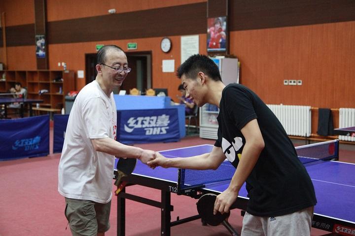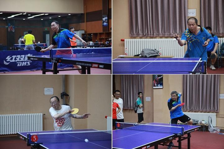 本次比赛共有6位老师和11名同学参加,分4个小组进行单循环赛,每组选出成绩最好的1位老师和1位同学进入最终的八强单淘汰赛,尽可能保证师生间的实力平衡。虽然师生双方的头号选手都未能参赛,但赛场上仍然云集了数学学院教工二队和三队的多位主力,同时实力相近的比赛阵容也为各参赛选手提供了登顶良机。值得一提的是,刚刚在羽毛球友谊赛中折桂的杨静平教授也马不停蹄地转场参加了乒乓球友谊赛。