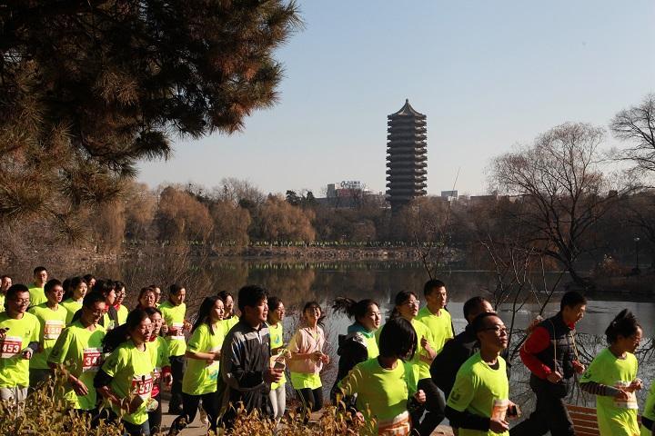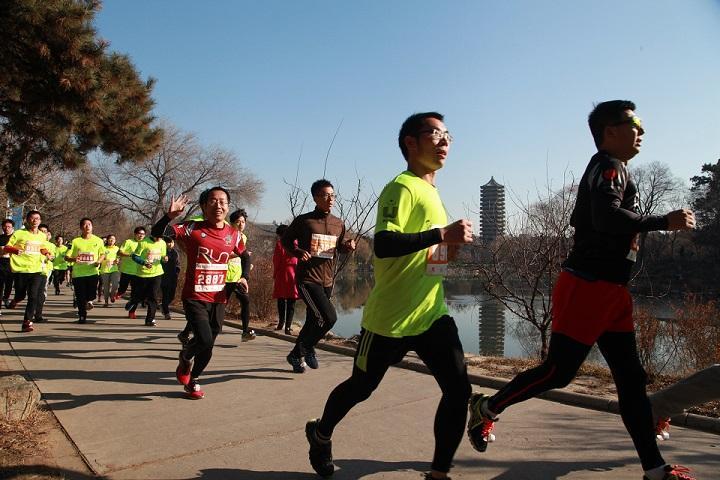 碧空如洗,阳光和煦。冬日的北京难得地遇上了温暖如春的清新天气。未名湖畔,一条浩浩荡荡的黄龙席卷北岸,轰轰然呼啸而过。跑者们的青春活力和矫健身姿,引诸多行人驻足赞叹。刘老师和郑老师的身影也处于领先的选手阵营当中。在诸多年轻人的包围之下,数学学院的老师们年轻的心也激荡起来,肆意地挥洒着青春的活力与火热的激情,用勤勉拼搏共绘了一幅壮丽的燕园冬日美景。