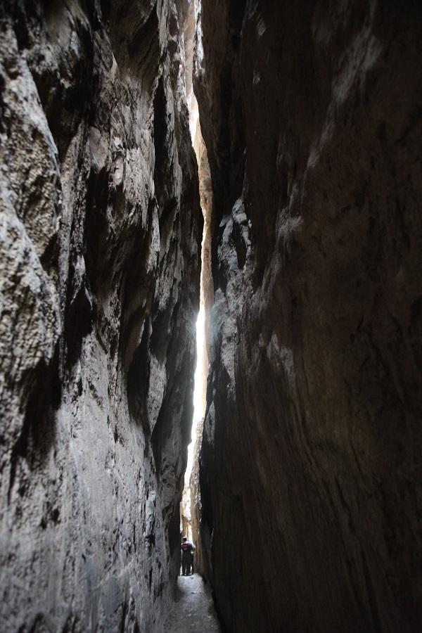 大河谷一侧则是另一番景象。这里由岩石构筑的河床地势平缓,路线宽阔,低洼处溪流不绝。一处大块平整的基岩层面上,嵌着几十块西瓜大小的黄色圆石,这是由地质冲刷沉积造就的“石中石”。循溪流缓步向前,登上一米多高的千层岩,谷中一座山头傲然而立。由植被簇拥的山石顶端,宛如神犬昂头驻守谷间,此为“犬守天门”。此后,道路逐渐开始变得狭窄崎岖,经过清潭与神潭两湾绿水后,左侧高耸的巨石上,一条数十米高的瀑布从天而降,瀑布中段被岩石所隔,遂称“二尺瀑”。掉头攀山不多久,见到一处极陡的石阶,上有千年古藤横亘。手脚并用翻上去后,就是十渡“十二大奇观”之一的“一线天”。此处的山体陡壁被硬生生劈开一道直直的巨缝,高四十余米,长六十余米,而宽仅一米左右。在两侧巨大而斑驳的石壁威压下,缝中仅可仰望一线生天,不禁令人惊叹大自然的鬼斧神工。其后便是镶在群山间的“小孤山”了。这块十余米高的岩石在绿树环绕下孑然而立,孤独地守望着这片净土。行走在山腰小路上,河谷美景一览无余,令人心旷神怡。穿过长长的悬索桥后,老师们集结踏上了归途。但大家仍然意犹未尽,兴奋地谈论着行程中的各种有趣见闻。