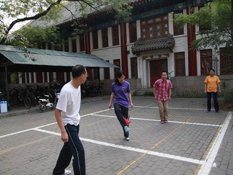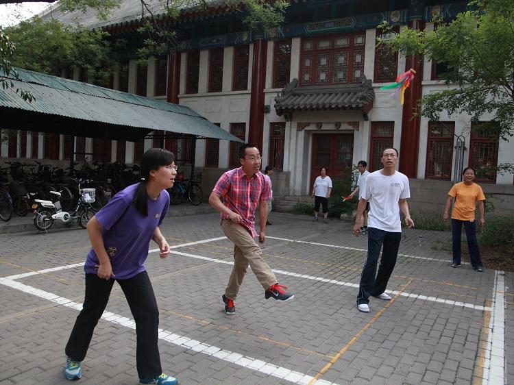 2014年北京大学教职工毽球赛,日前展开激烈角逐。在数学科学学院工会体育委员郑春鹏老师的积极奔走与组织下,数学科学学院首次组队参加比赛。