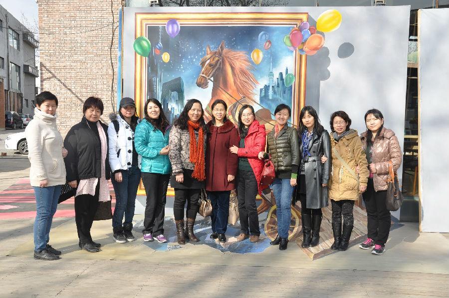 3月13日中午,大家怀着喜悦的心情乘车前往798艺术区。当天天气晴朗,暖意浓浓,大家的心情也格外放松,一路上有说有笑,不一会就抵达了目的地。下车后,大家先去参观3D画展。进入画展里面,大家完全颠覆了以前对平面画的认识。3D画展里面的画虽然都是画在平面上的,但非常有立体效果。置身在画展中,仿佛身临其境一般,平时紧张繁忙的工作生活情绪瞬间得到释放。大家兴致盎然地模拟画中场景,摆各种姿势拍照,追求人和画融为一体的感觉,欢声笑语不断传出。