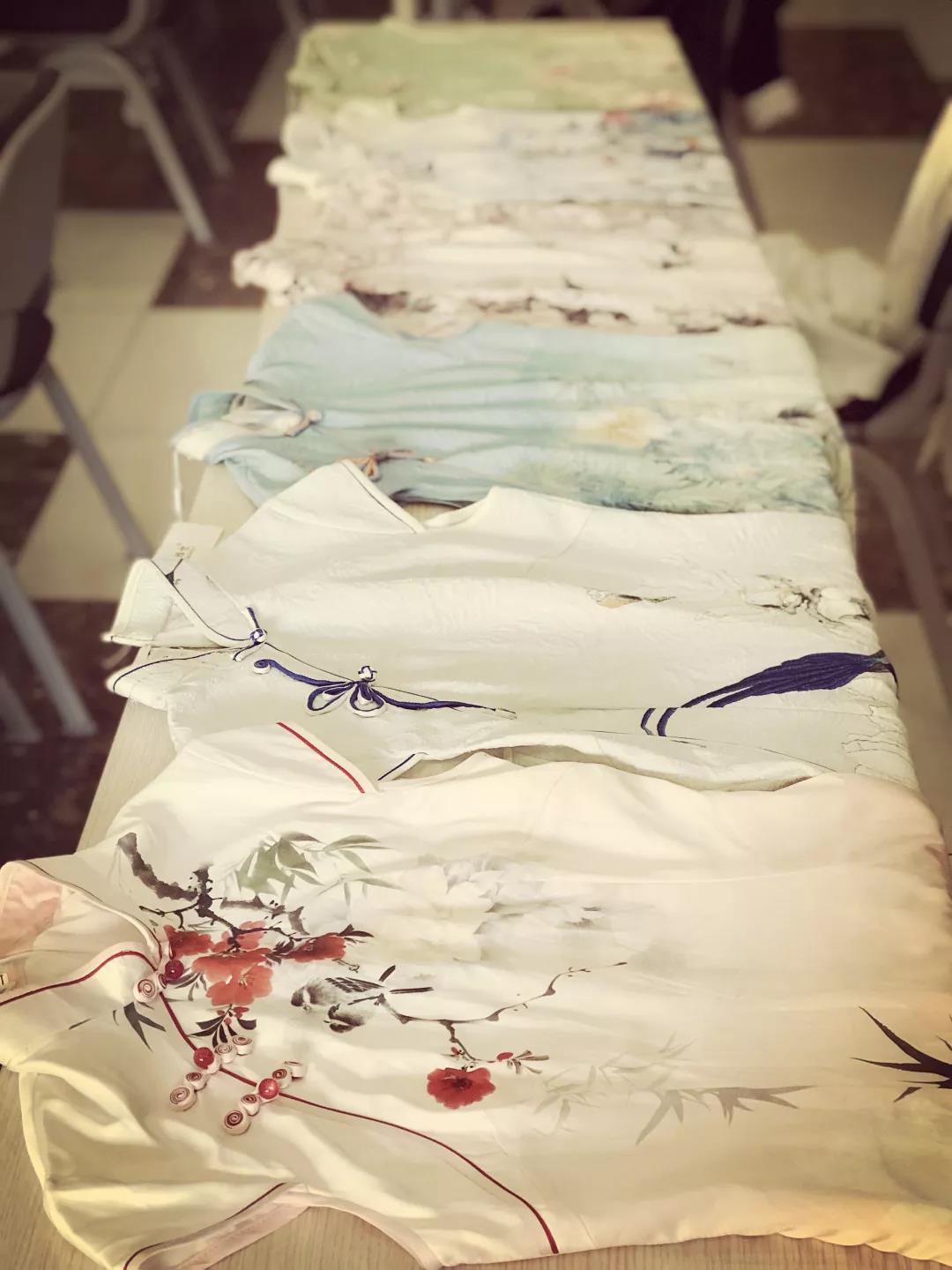 搭建设备、架设幕布、化妆……学院的工会活动室瞬间变成了摄影棚。女士们身着形制多样的旗袍,研讨着旗袍经过多年演进与改良后在襟、领、袖等方面所蕴含的审美情趣,并解读祥云、水纹、玉兰、百合等意象的象征意义,进而领悟“凤穿牡丹”、“繁花似锦”、“紫气东来”、“花开富贵”这些传统服饰纹样所蕴含的美好寓意。