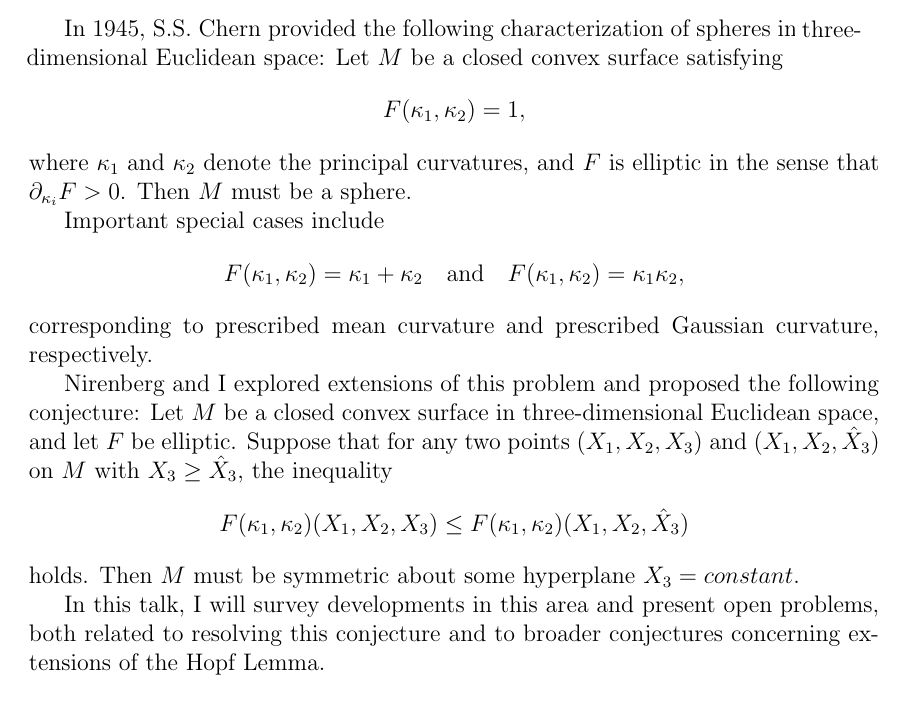 2025年北京大学程民德讲座—— Symmetry of hypersurfaces and the Hopf Lemma