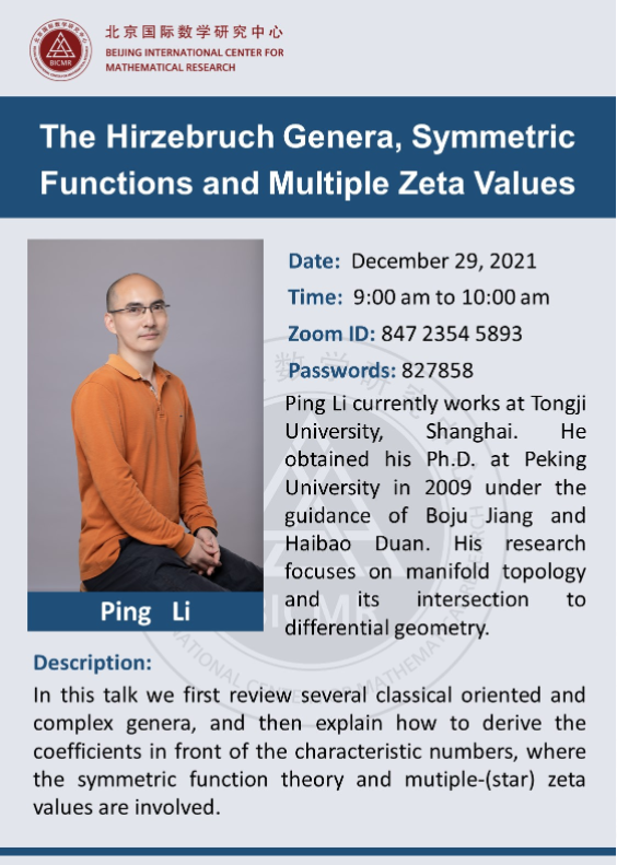 Ping Li currently works at Tongji University, Shanghai. He obtained his Ph.D. at Peking University in 2009 under the guidance of Boju Jiang and Haibao Duan. His research focuses on manifold topology and its intersection to differential geometry.