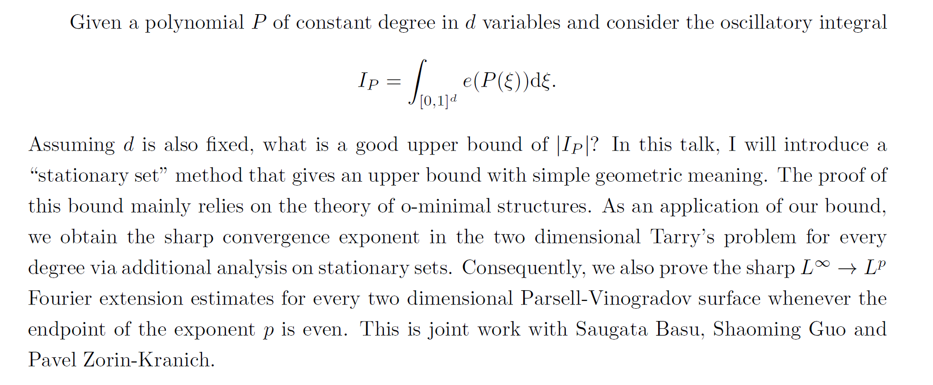 School Colloquium——A stationary set method for estimating oscillatory integrals