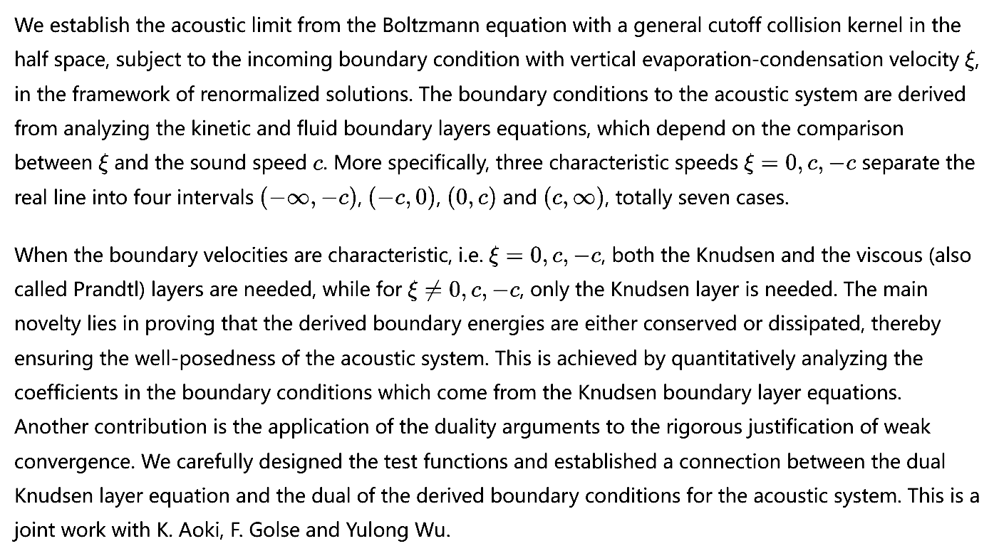 School Colloquium——The acoustic limit from the Boltzmann equation with moving boundary conditions