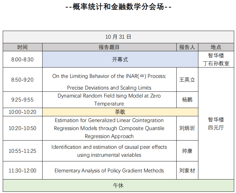 概率统计和金融数学分会场:北京大学智华楼四元厅