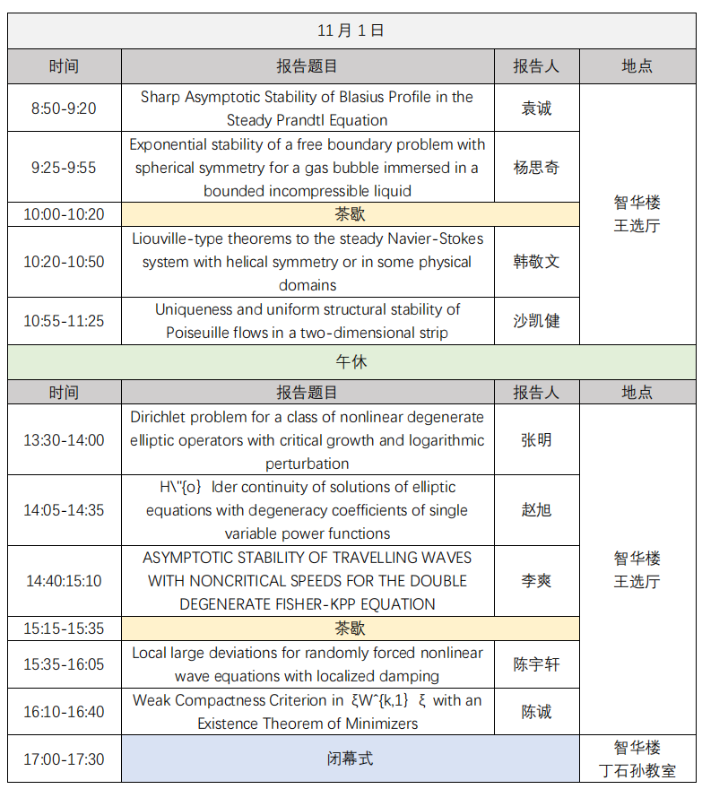 闭幕式:11月1日下午 17:00-17:30 智华楼丁石孙教室