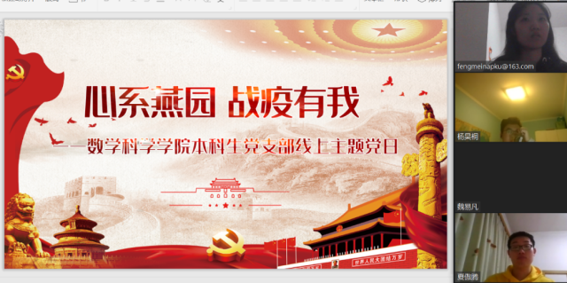 2月23日20:00,学院本科生党支部开展“心系燕园 同心战疫”线上主题党日。22名党员齐聚一堂,学习贯彻习近平总书记给在北京大学首钢医院实习的西藏大学医学生回信精神,主题党日由党支部书记冯美娜主持。