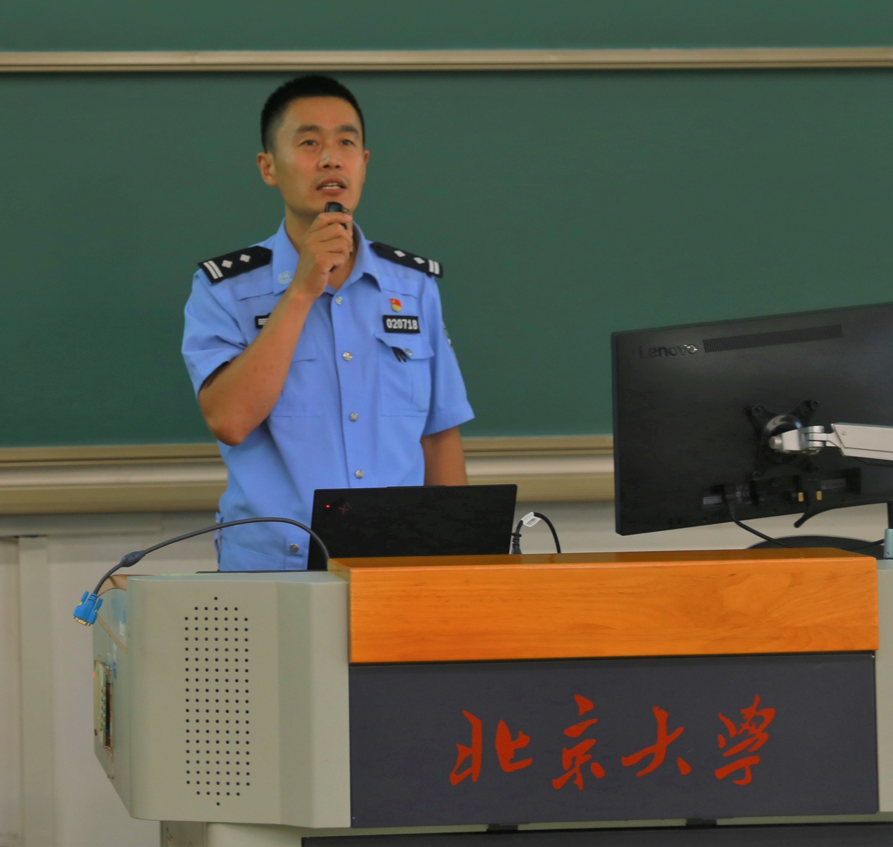 毋泽鹏以“守规矩、明底线、有担当”为主题对高校学生常见的违法行为进行讲解。他表示新生要树立底线意识,不能扰乱公共秩序,不侵犯他人合法权利,遵守社会和学校的管理规定,自觉维护学校声誉,坚守学术诚信底线。他提醒新生要做到不越道德底线,不踩校规红线,不碰违法违纪高压线。