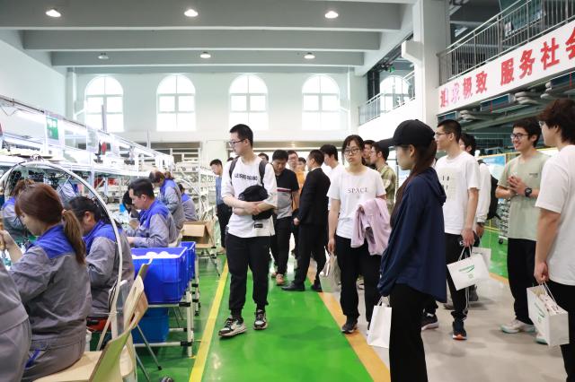 随后,师生们来到肉食品城,参观年产量200万头的屠宰流水线。整条线自动化水平高,机器已经参与到高温去毛、肉质量检测等诸多工作,而内脏分离等较精细化的工作仍由人工完成,机器与人工并用,兼顾了效率与质量。同学们感受到,养猪场智能化程度不断提高,每一款科技产品都离不开技术原理和实践的紧密结合。