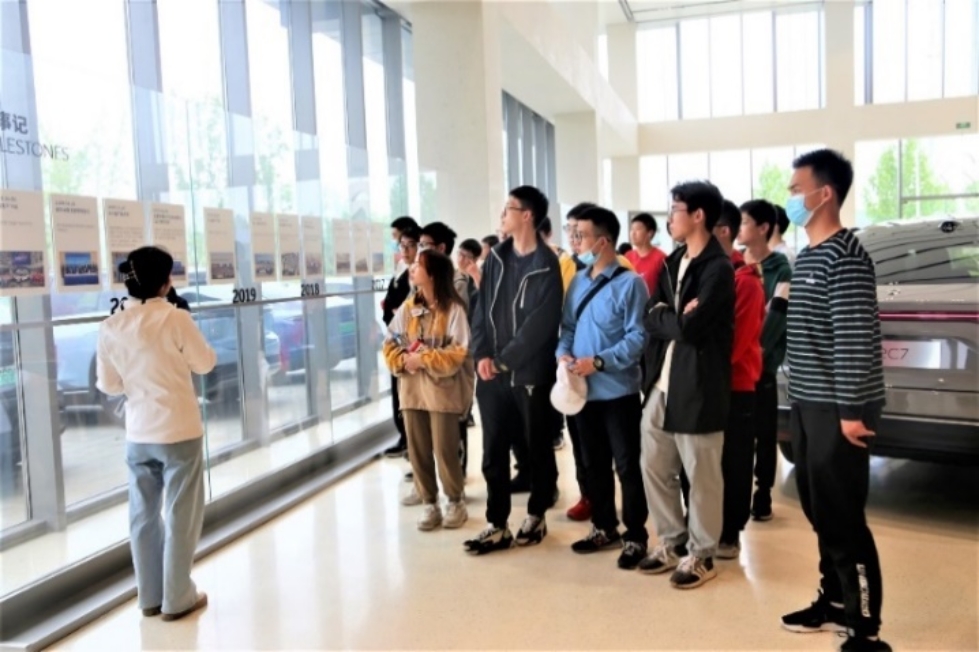 在蔚来先进制造基地,同学们近距离观摩了汽车生产的自动化生产技术,了解新材料、新能源在汽车领域的应用,同学们深刻领悟到科技创新、技术进步对企业发展的重要性,也看到民族品牌从中国走向世界的发展路径。