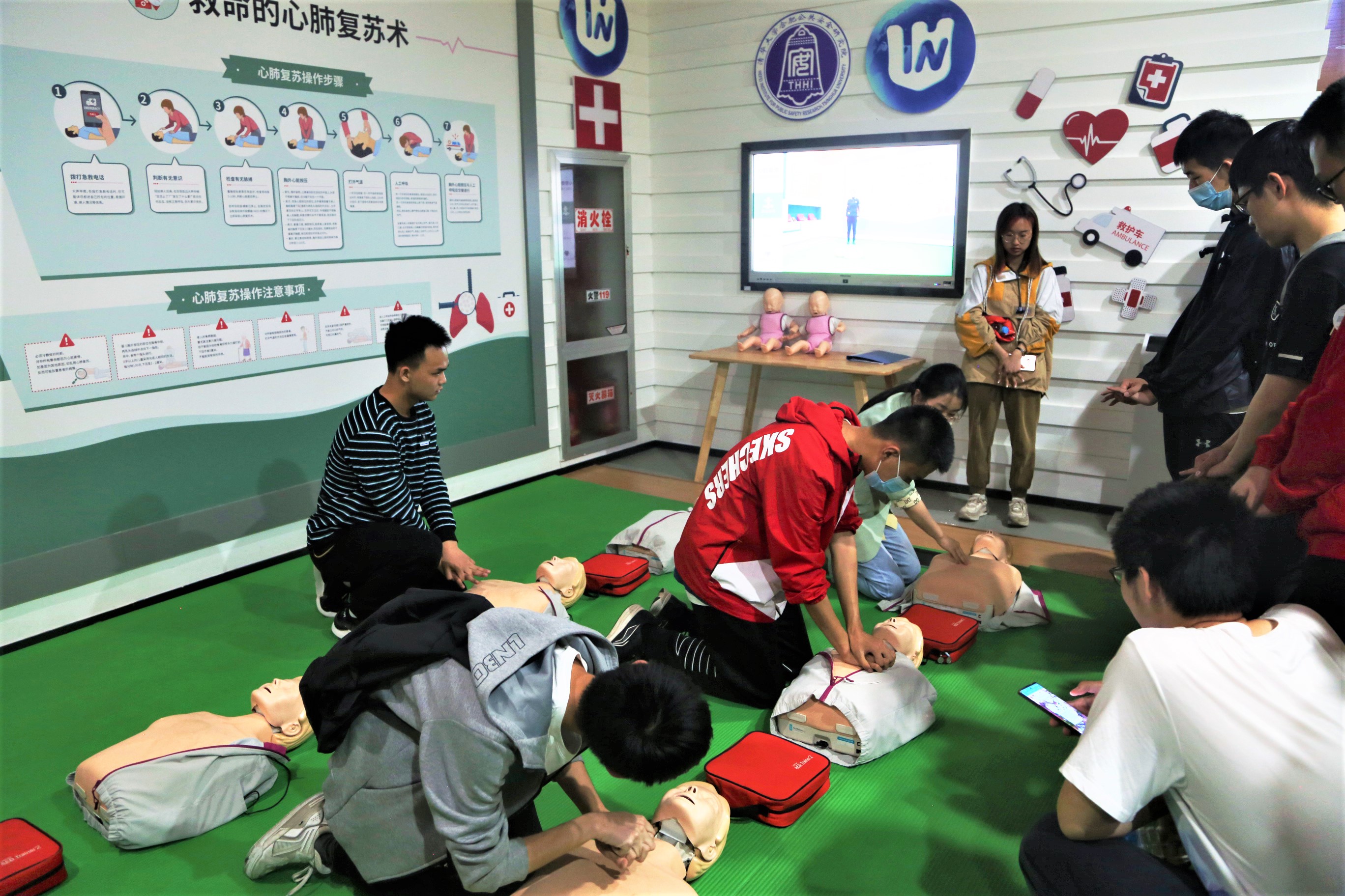 实践团师生在清华大学合肥公共安全研究院了解了高新技术在公共安全领域的应用。同学们先后参观了城市生命线安全运行技术研究平台、人员安全与防护研究中心、灾害机理与模拟研究中心等实验室,从桥梁建设到城市道路,从灾害预警到情景模拟,新技术广泛应用于生活的各个角落。除了参观高新技术实验室之外,同学们也在在安全文化体验馆中学习了交通、消防等多种安全防护技能。