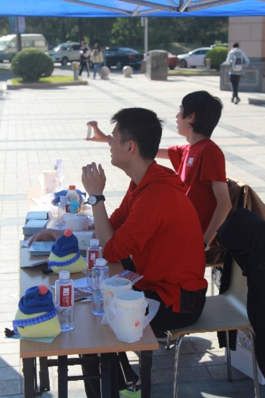 正在向大家宣传的志愿者同学