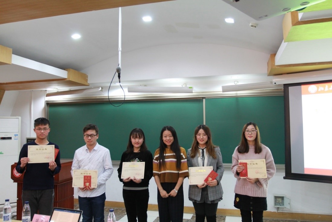 院党委副书记董子静为获奖党支部、班级、团支部颁奖并讲话。董老师表示,学院将一如既往支持团学组织与党团班工作,从资金和制度多方面激励保障,为工作开展提供广阔空间。她感谢团学组织与党团班骨干一年来的辛勤工作,在少数受表彰的组织外,还有很多党支部、班级、团支部开展了让同学们有获得感的工作,祝愿大家2019年在学业工作各方面更进一步。