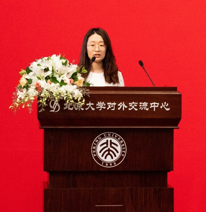 我是数院2021级统计学专业博士生翟雨瑶,很荣幸可以作为北京大学数学科学学院新生代表在这里发言。