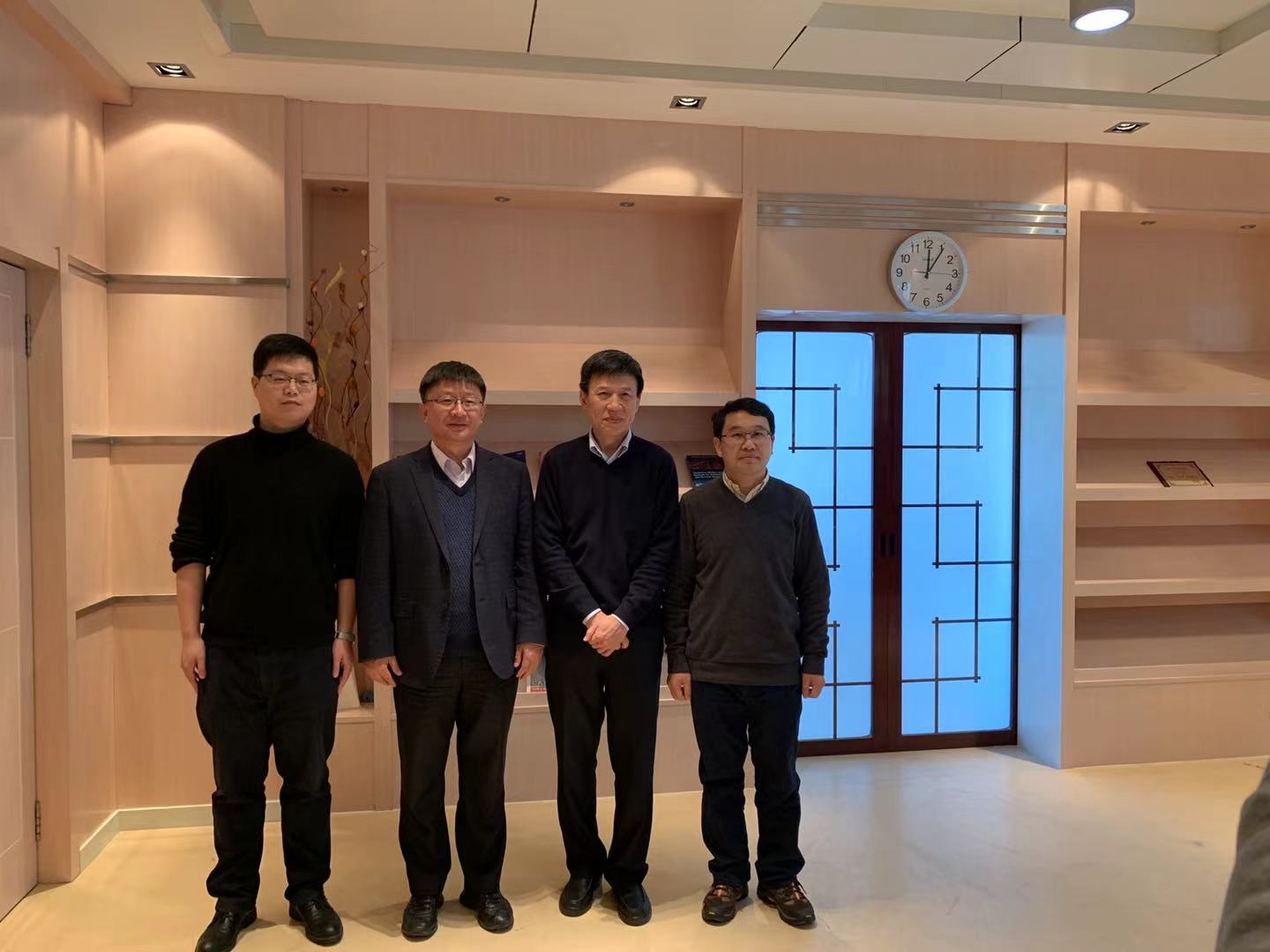 学术界的“四世同堂”:耿直(右二)、学生郭建华(左二,东北师范大学副校长)、郭建华的学生朱圣文(右一,东北师范大学数学与统计学院副院长)、朱圣文的学生王鹏飞(左一,东北财经大学)