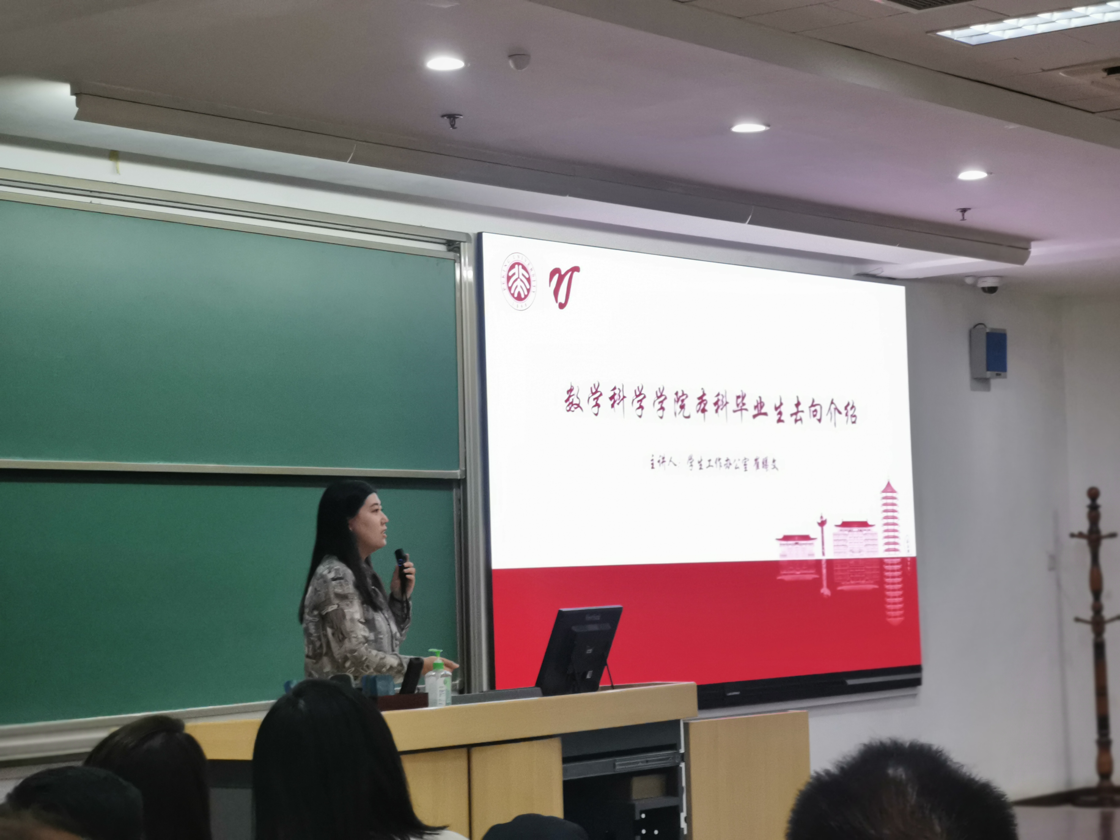 学生工作办公室副主任牛贺讲解新生常见心理适应问题和家校联动机制,学生工作办公室辅导员崔曦文介绍了本科毕业生去向,希望同学在校期间能锻炼主动性、自觉性、独立性,形成健康多元的价值导向。