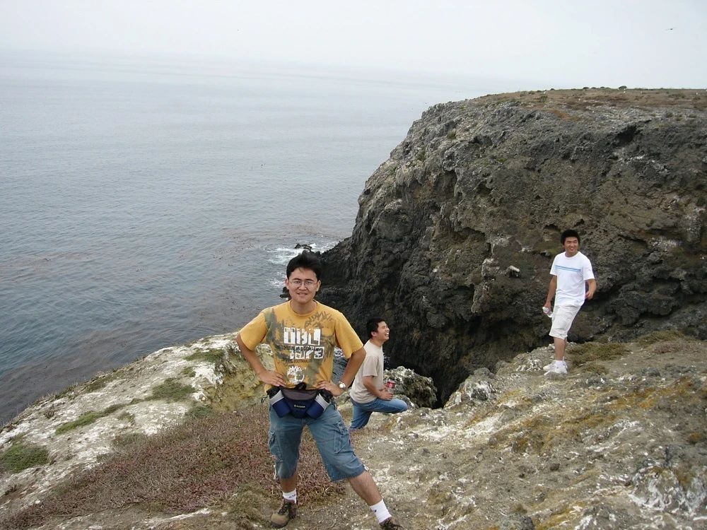 董彬老师在UCLA读博期间与同学去海岛露营时留影