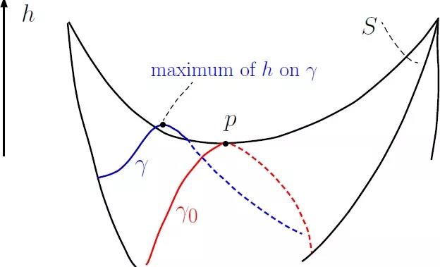 A:我们不妨先考虑低维的情况。如果我们希望在一个闭球面上找到一条闭测地线,最简单的想法是能否找到一条长度处处最短的线。但因为球面没有拓扑,在球面上放一个橡胶圈(rubber band),它可以很自然地收缩到一点。由此在二维球面上求闭测地线不是一个平凡的问题,这个问题由Poincare提出,由Birkhoff在20世纪初给出了完整的数学证明:需要考虑一族可以自由收缩的橡胶圈。从球面的一点(如北极)出发,覆盖整个球面,直到覆盖南极点。由于这一族橡胶圈不能收缩到一点,那么其中应该会有一条是局部最短的,也就是测地线。