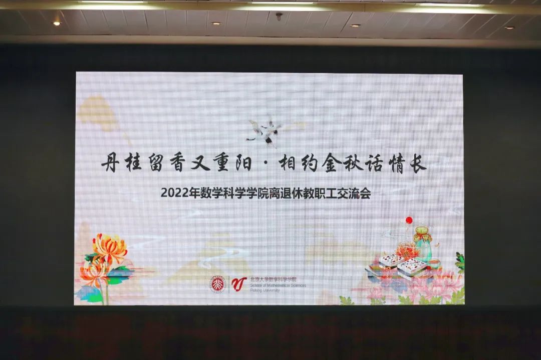 2022年9月29日上午,北京大学数学科学学院“丹桂留香又重阳·相约金秋话情长”交流会暨离退休教职工座谈会在北京大学中关新园科学报告厅召开。会议采用线上、线下相结合的方式举行,40余位离退休教职工积极参与,欢聚一堂。院长陈大岳,党委书记胡俊,党委副书记、副院长孙赵君,党委副书记董子静,数学系主任王嵬出席本次座谈会。座谈会由孙赵君主持。