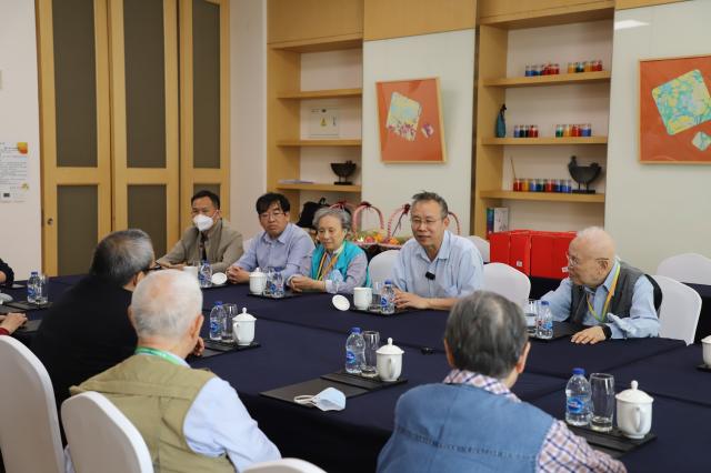 本次慰问采用茶话会的形式,共有4名老同志参加,包括学院最高龄退休教师、现年96岁的张芷芬教授,以及姜伯驹院士、张恭庆院士和文丽教授。慰问活动中,陈大岳首先对老教师们为学院发展做出的卓越贡献表示感谢,并向各位老师着重介绍了110周年院庆筹备情况及智华楼建设情况,诚挚邀请他们常回校看看。胡俊汇报了学院目前的发展和近年来取得的成绩,希望退休老师们继续关心和支持学院工作。孙赵君详细询问了老师们的身体状况和生活情况,了解他们在日常起居和看病就医方面是否有困难。与会的老师们互相交谈,畅聊近况。回望燕园的执教时光,老师们总是面带笑意。同住在泰康之家·燕园养老社区的袁守诚副教授因身体原因临时无法出席茶话会,学院派代表对他单独进行了看望和慰问,并送上慰问品。