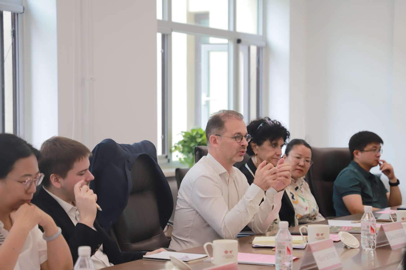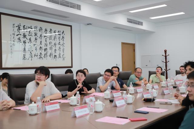 2024年6月20日上午,法国驻华大使馆高教科研与创新部科技专员Xavier ANTOINE和Hélène BERGES等一行4人访问北京大学数学科学学院,并在智华楼第一会议室与北大教师进行了座谈交流。北京大学数学科学学院和北京国际数学研究中心束琳、王超、向圣权、李智强、杨文元、孙鑫、李欣意等10位教师,科研部副部长张磊、部长助理范少锋参加交流活动。座谈会由数学科学学院副院长丁剑教授主持。