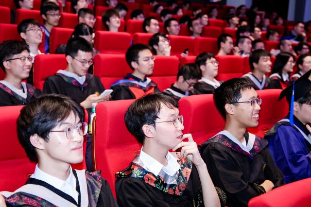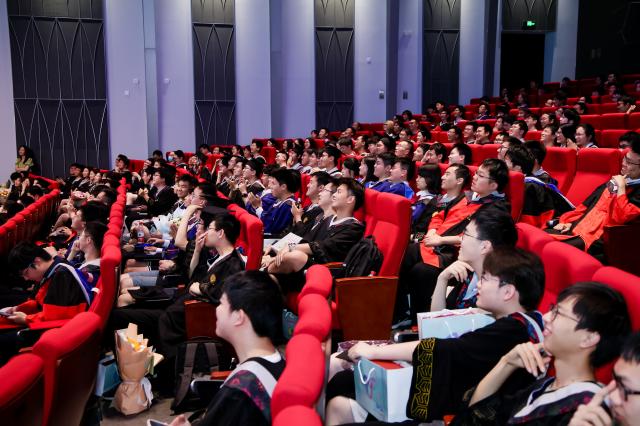 姜宇结合他的求知之路和工作经历勉励同学们树立远大理想信念、紧跟国家战略需求,珍惜青春时光、敢为天下先,与时俱进、勇于创新,并祝愿毕业生同学们能成为新时代的探索者和引领者,成为人类认识未知道路上的点灯人,共同创造一个更加美好的世界。