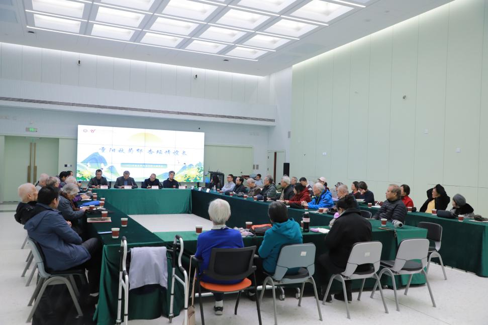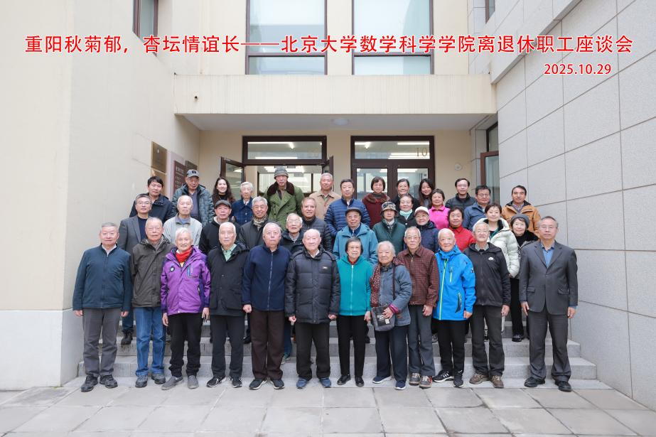 2025年10月29日上午,北京大学数学科学学院“重阳秋菊郁,杏坛情谊长”交流会暨离退休教职工座谈会在智华楼善兰厅召开。30余位离退休教职工欢聚一堂,共迎九九重阳。数学科学学院院长陈大岳,党委书记胡俊,副院长刘若川,党委副书记董子静,党委委员邓明华,数学系主任王嵬,信息与计算科学系李铁军,概率统计系统计学教研主任林伟出席本次活动。座谈会由副院长孙赵君主持。