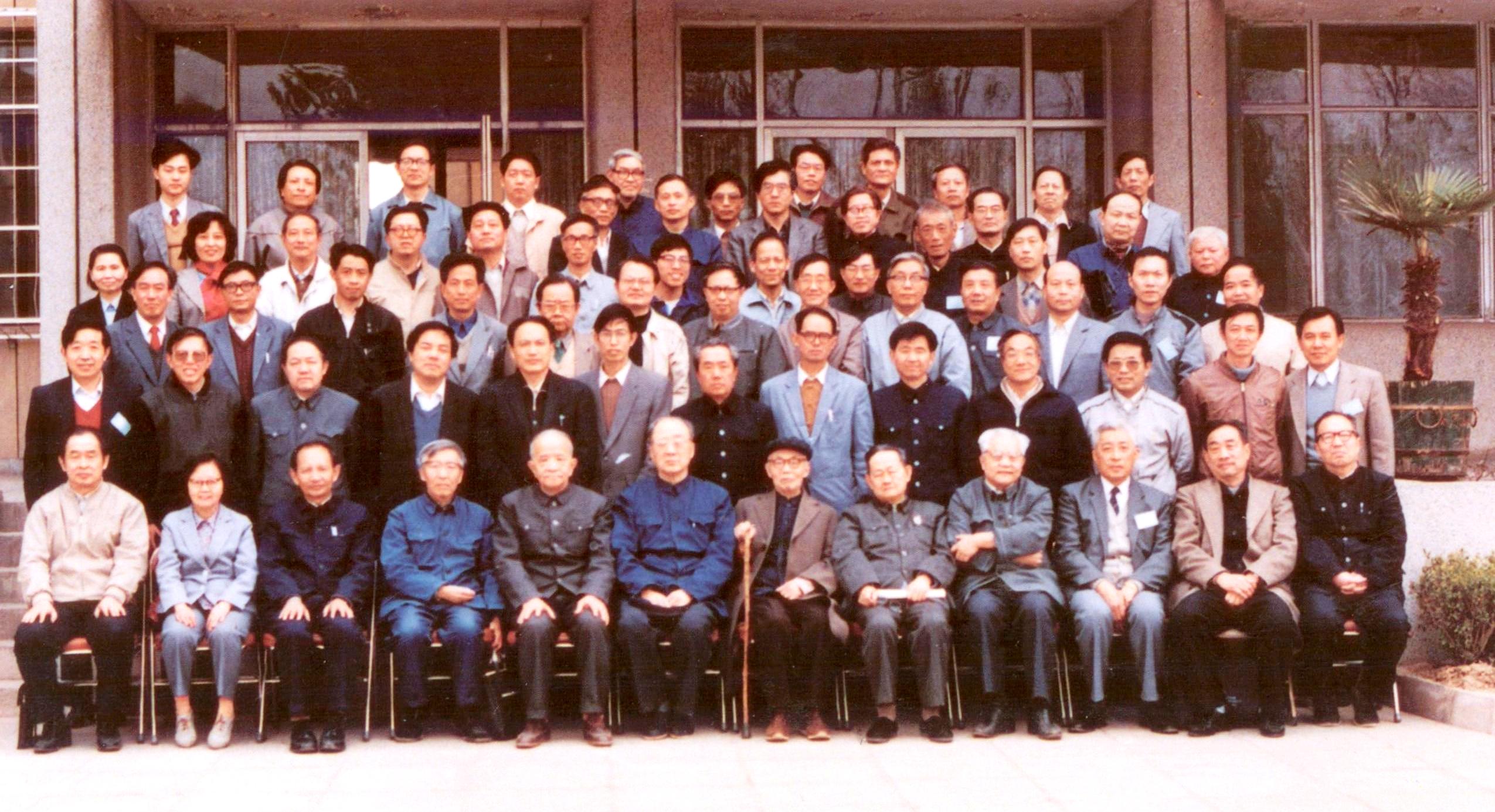 1988年4月, 中国数学会第五届理事会第一次会议在北京大学召开,前排右三为丁石孙