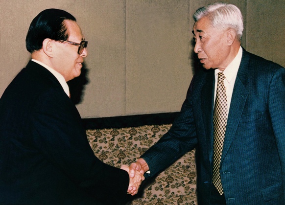 1997年元旦茶话会,江泽民与丁石孙